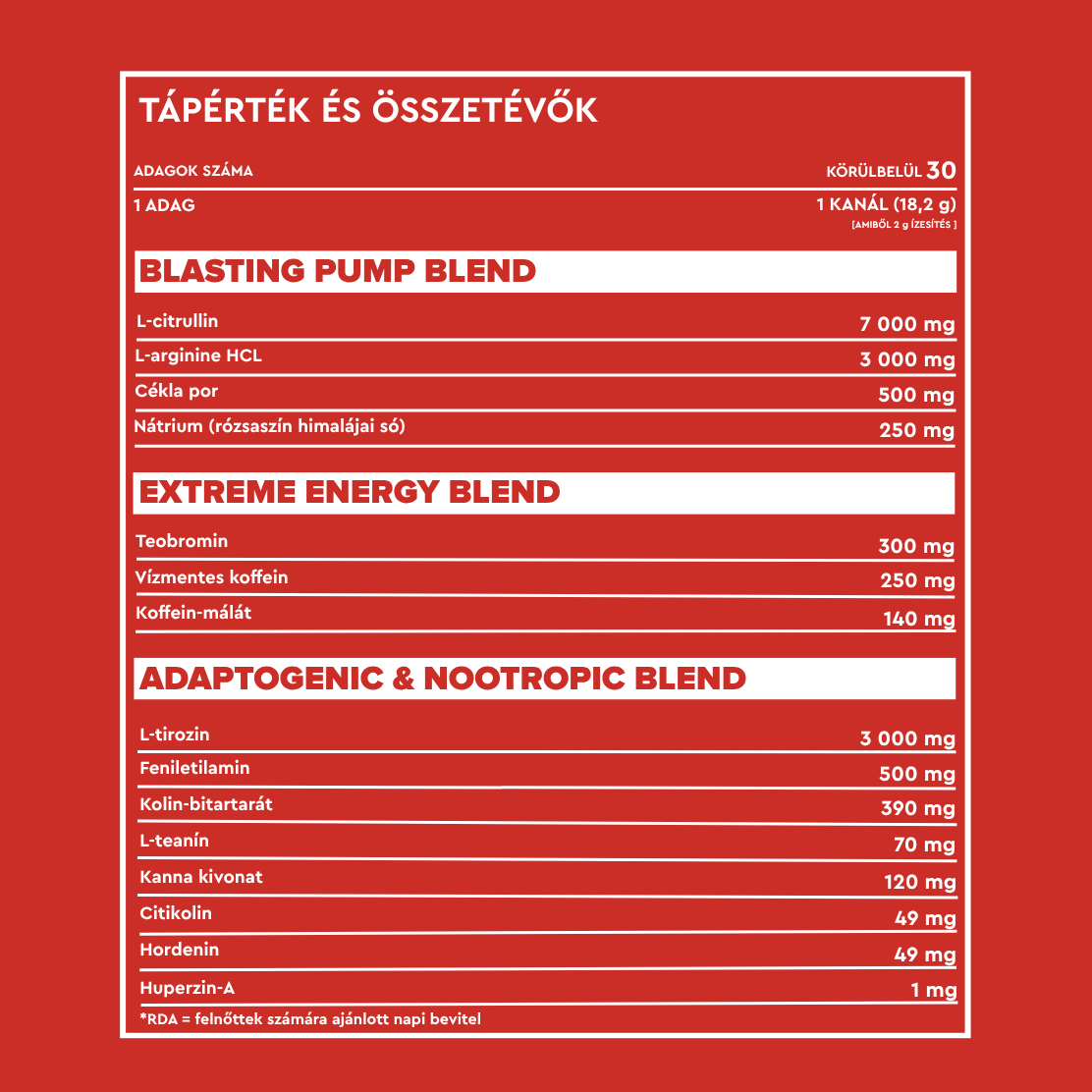 7 000 mg L-Citrullin – fokozza a nitrogén-oxid termelést, növeli a pumpot és a teljesítményt