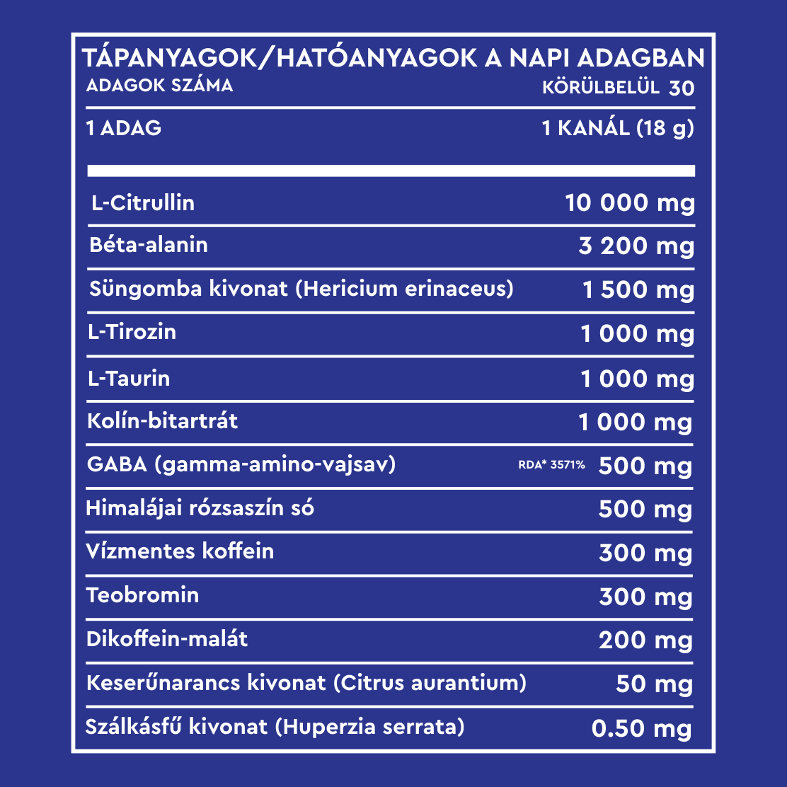 Első használatkor keverj el ½ adagolókanálnyit 250–300 ml vízben, éhgyomorra, 30 perccel edzés előtt. A teljes hatás érdekében fokozatosan emeld az adagot 1 teljes adagolókanálra.