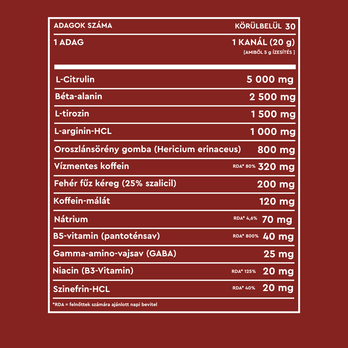 Érezd, ahogy a L-Citrulline és L-Arginine szétárasztja az izmokban a vért, miközben a háromféle koffein hullámokban adja az energiát – gyorsan, majd tartósan.